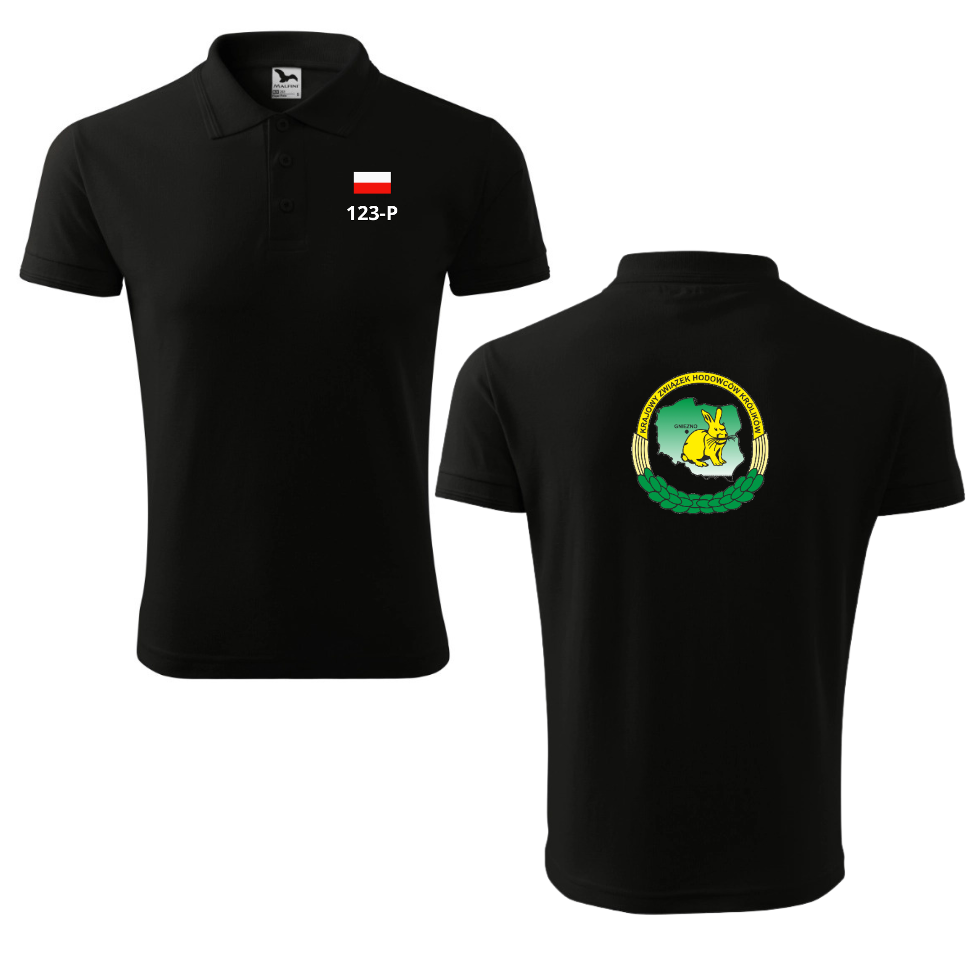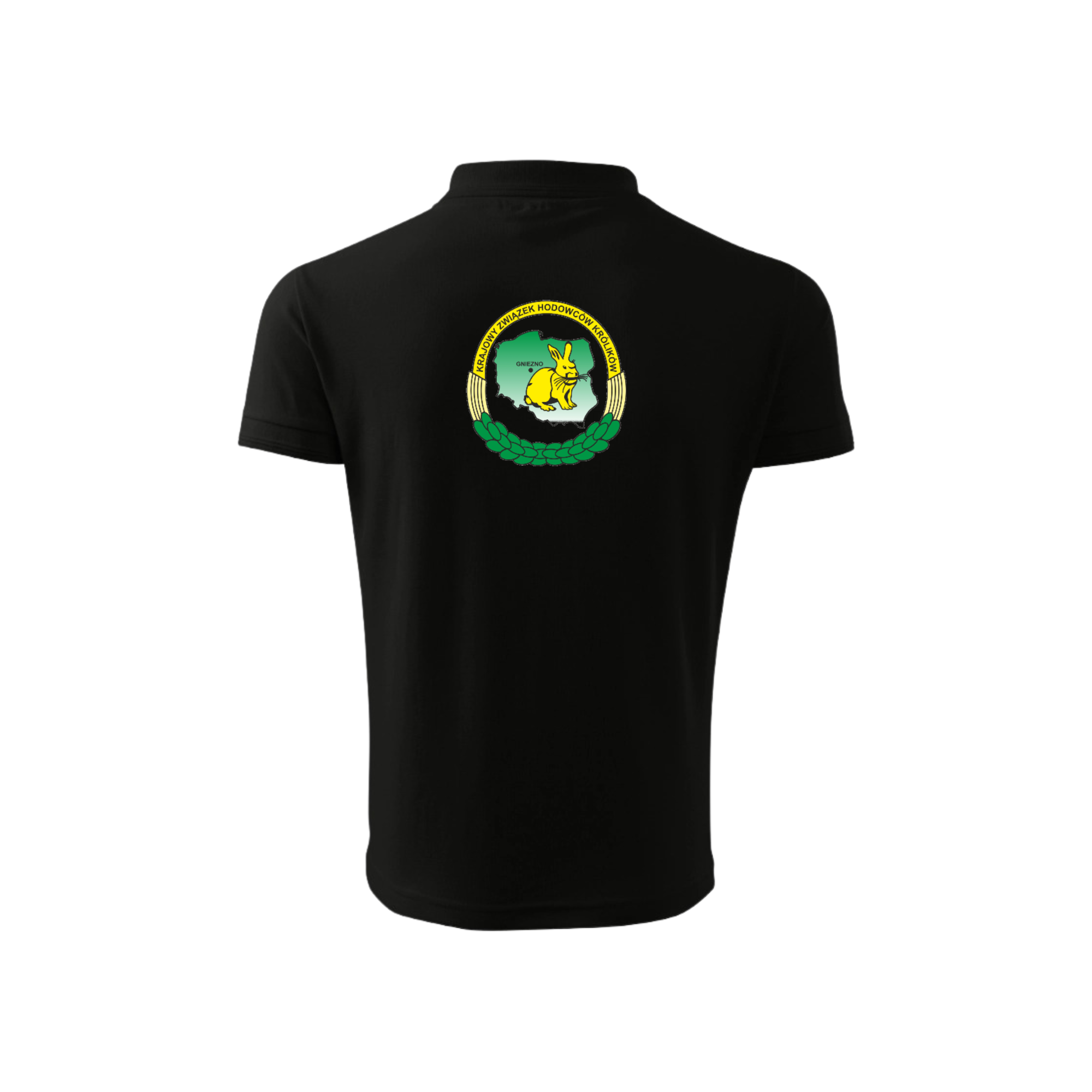 Czarna Koszulka Polo z Nadrukiem Krajowego Związku Hodowców Królików Rasowych