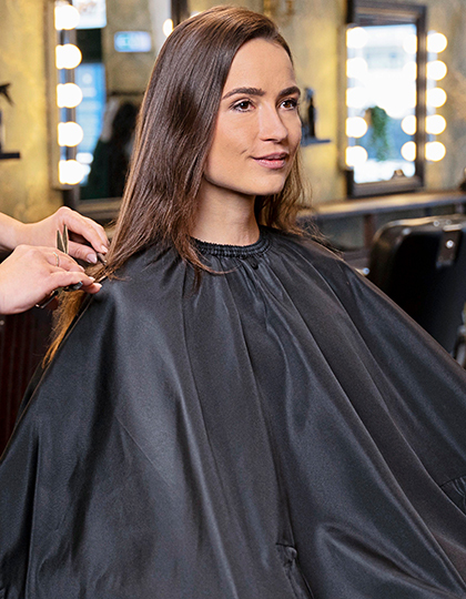 Dzięki praktycznym otworom na ręce peleryna zapewnia klientom komfort i swobodę podczas strzyżenia czy koloryzacji. Antystatyczne właściwości zapobiegają przyleganiu włosów, a regulowane zamknięcie z metalowymi zaciskami gwarantuje idealne dopasowanie do szyi.