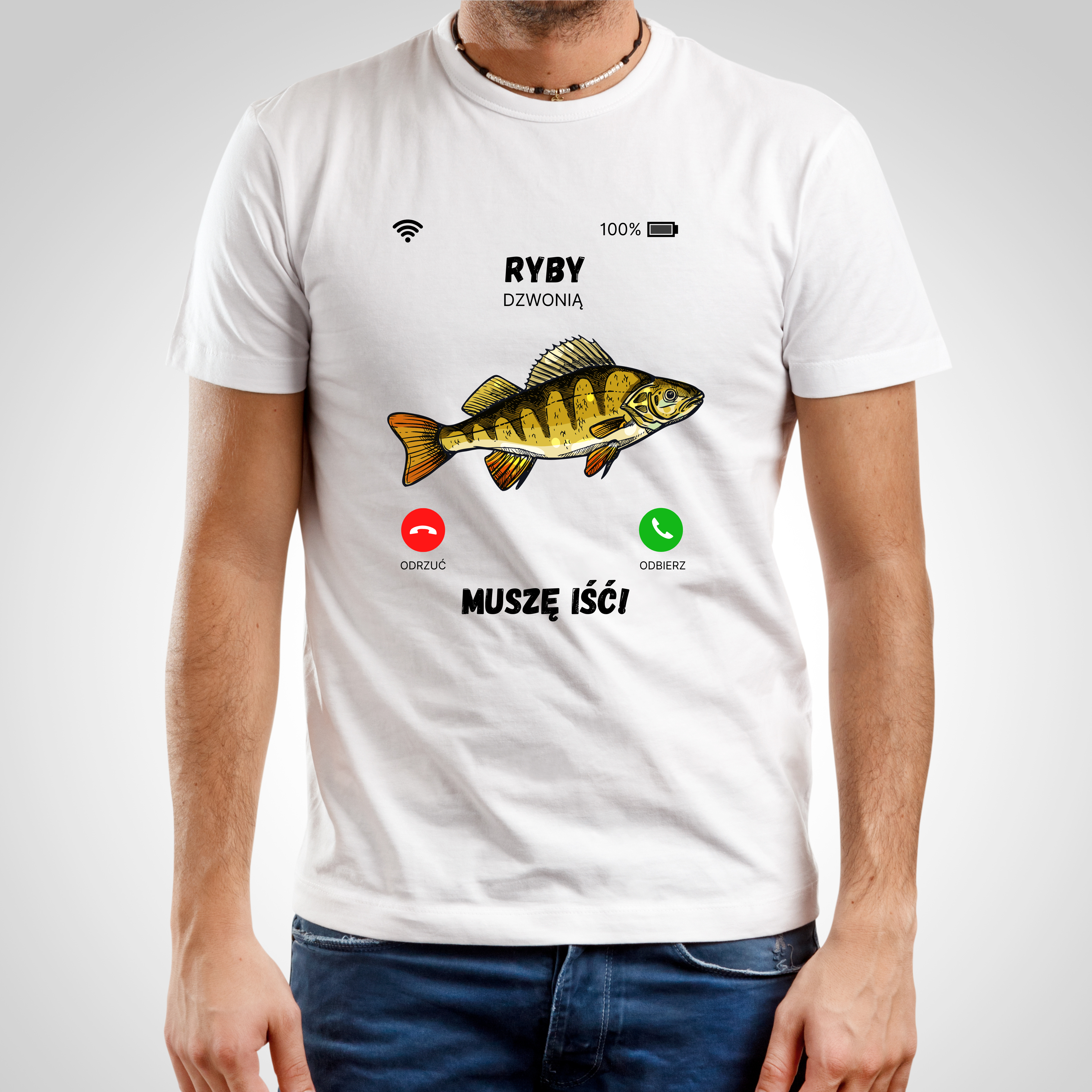 Koszulka Męska z Nadrukiem "Ryba Dzwonią, Muszę Iść"